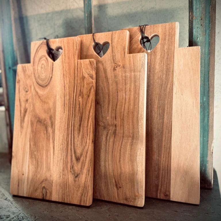 Flott skjærebrett i tre med hjerte i håndtaket.